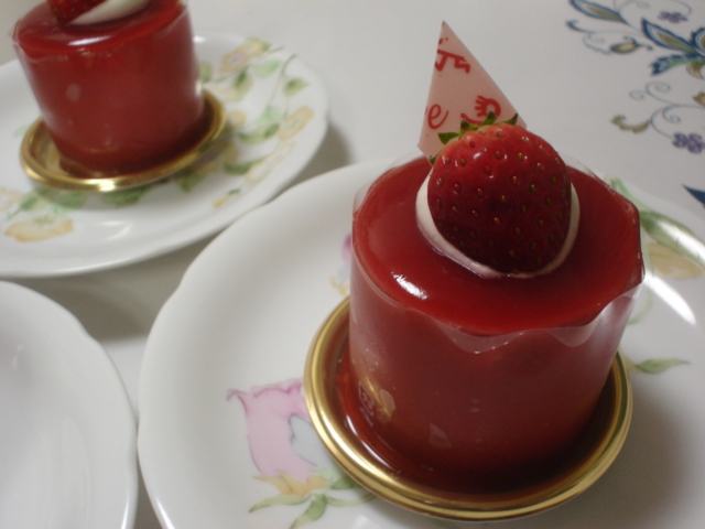 夕食食べた後に、この店で買ってきた「いちごの気持ち」というケーキを紅茶で美味しくいただきました!!!